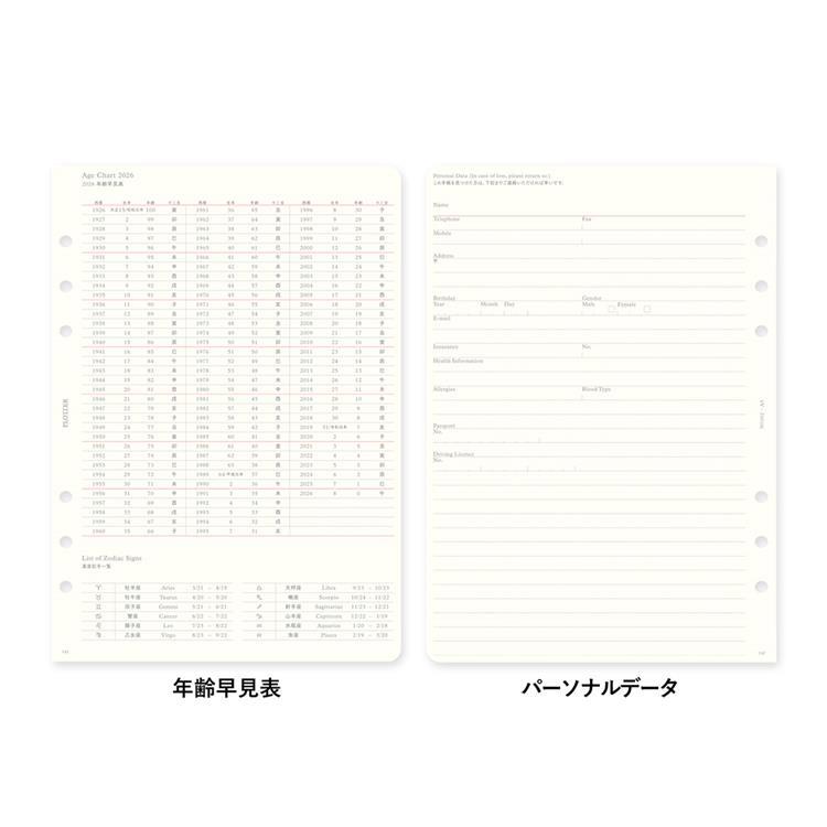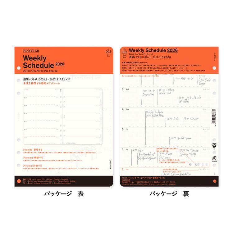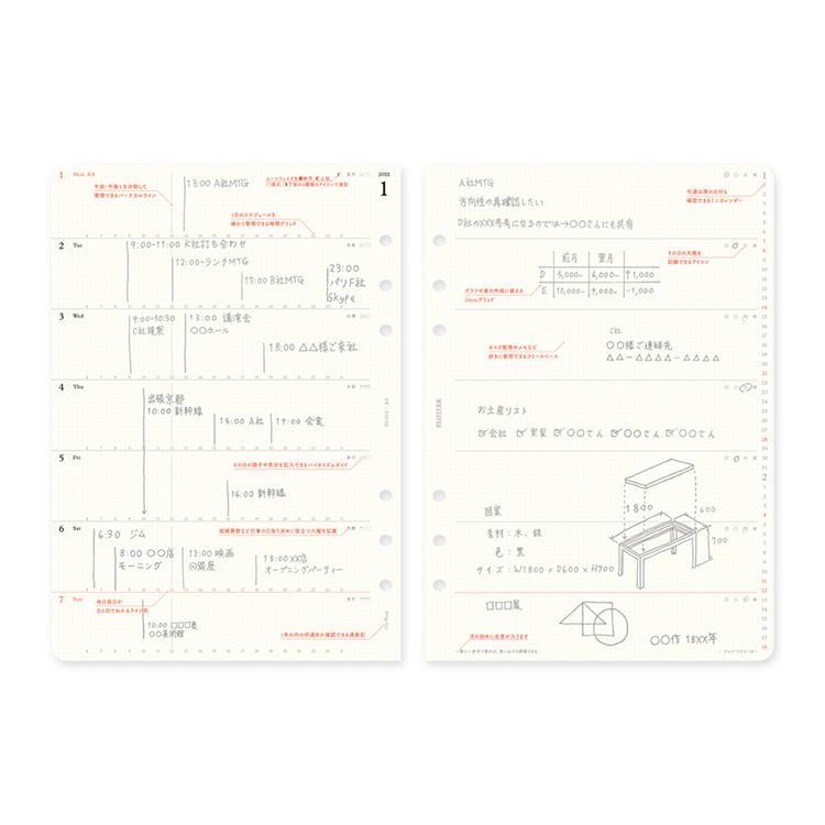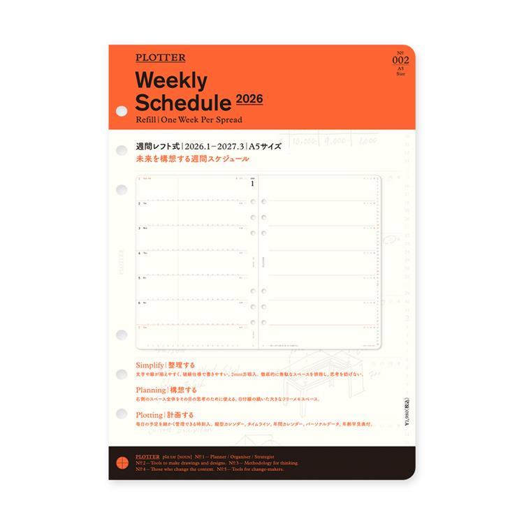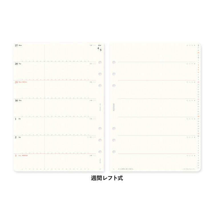 - 2026年1月始まりシステム手帳用リフィル A5 週間レフト プロッター