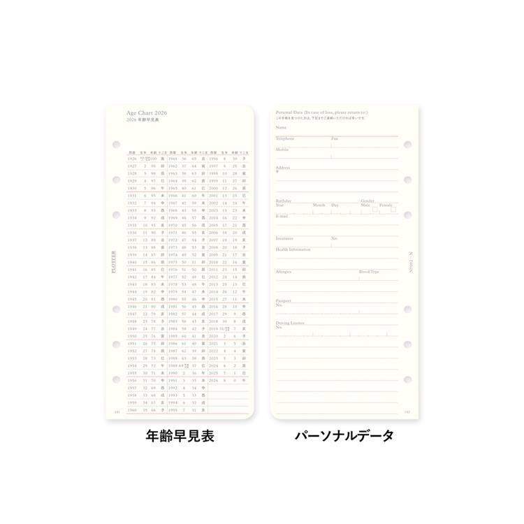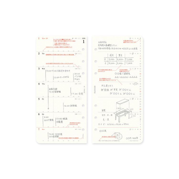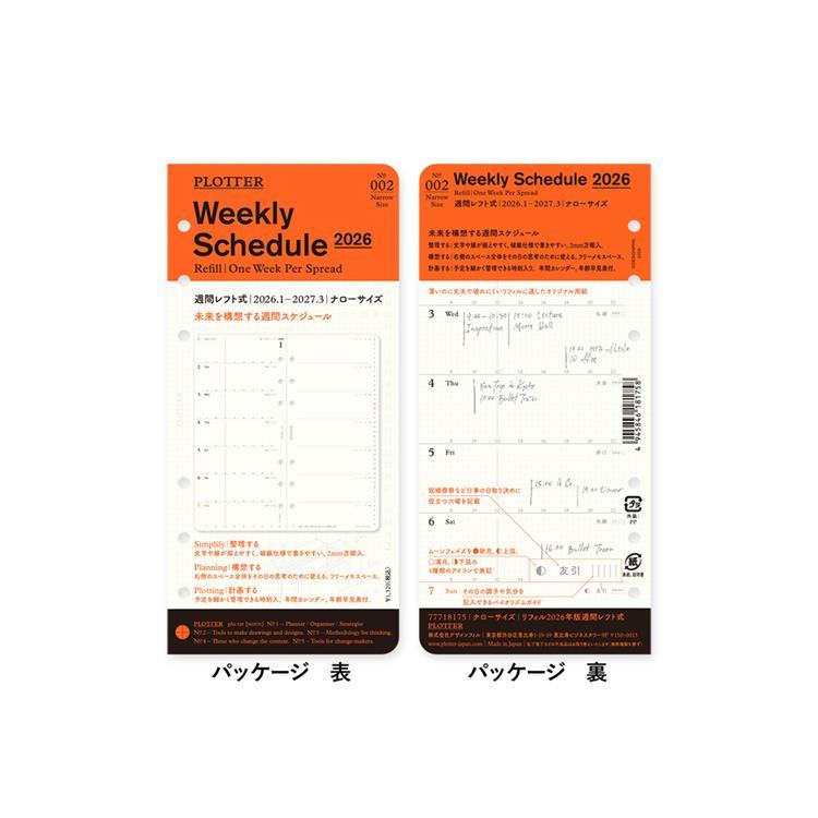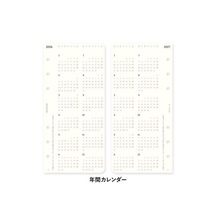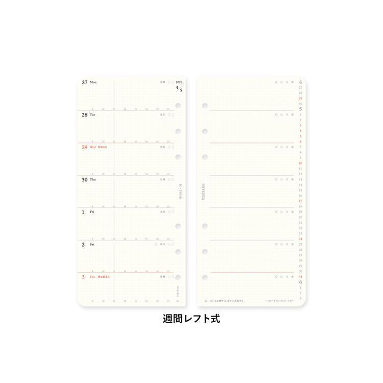 - 2026年1月始まりシステム手帳用リフィル ナロー 週間レフト プロッター
