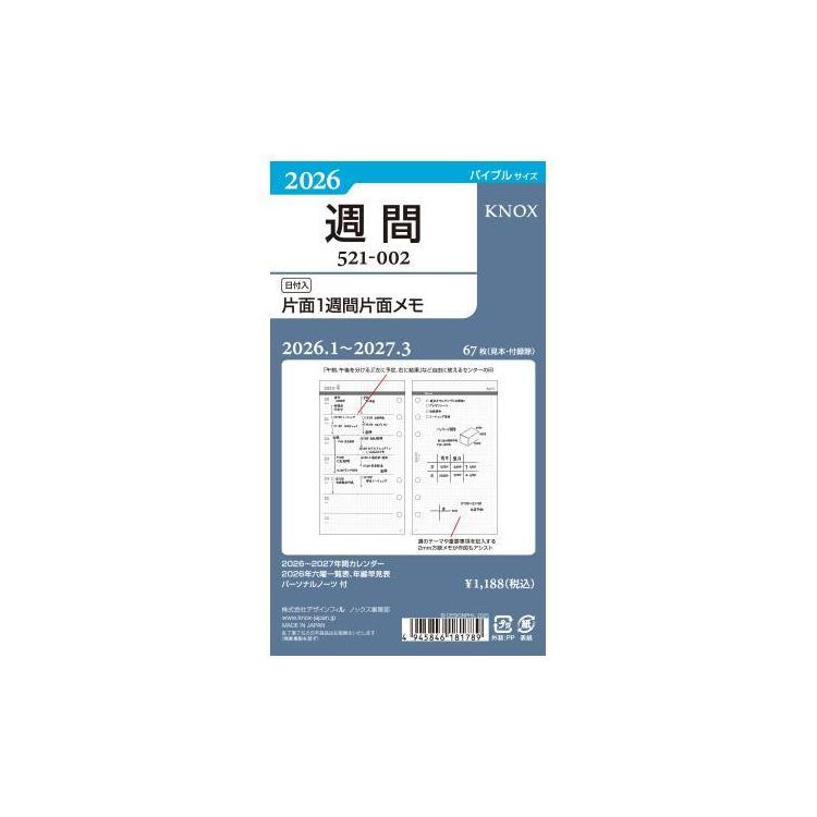 - 2025年12月始まりシステム手帳用リフィル バイブル 週間 片面1週間