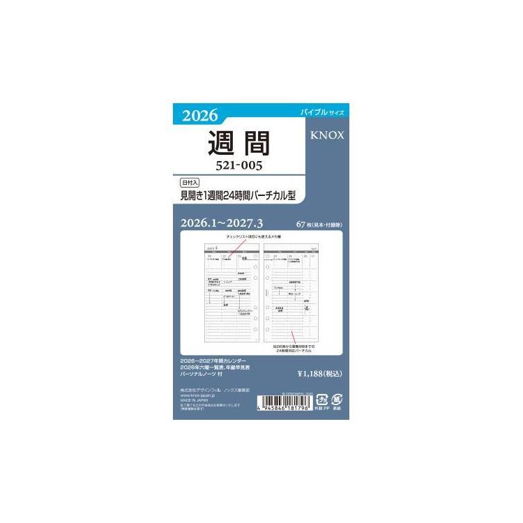 - 2025年12月始まりシステム手帳用リフィル バイブル 週間バーチカル 見開き1週間