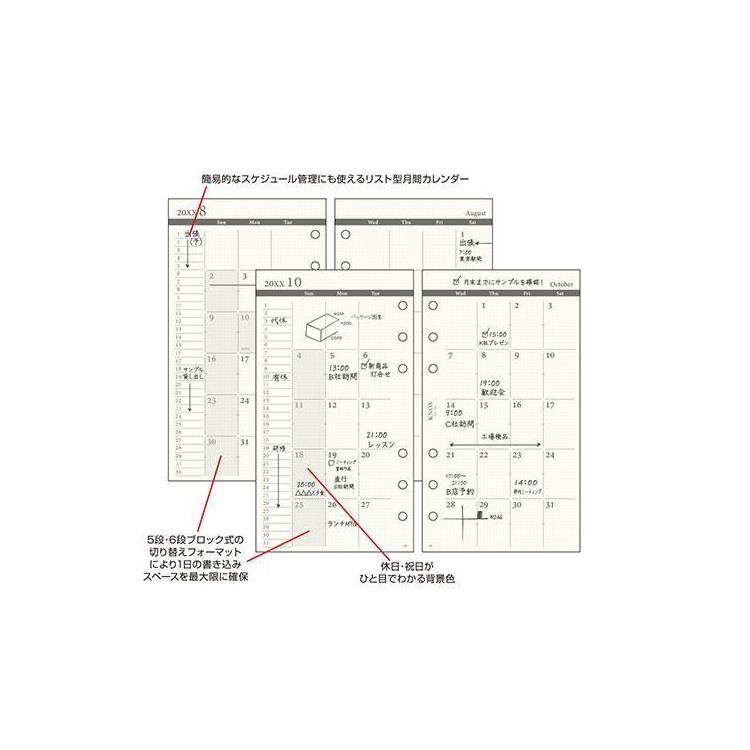 2026年1月始まりシステム手帳用リフィル バイブル 月間 ブロック 日曜始まり