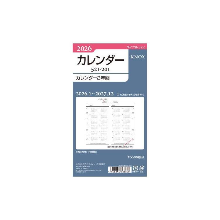 - 2026年1月始まりシステム手帳用リフィル バイブル カレンダー2年間