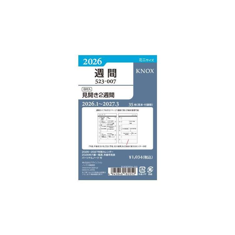 - 2026年1月始まりシステム手帳用リフィル ミニ6 週間 見開き2週間