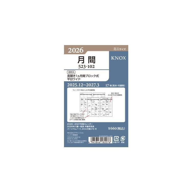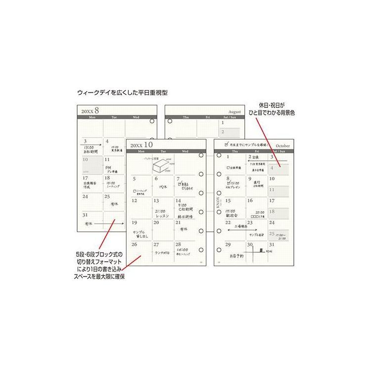 - 2025年12月始まりシステム手帳用リフィル ミニ6 月間 ブロック 平日ワイド