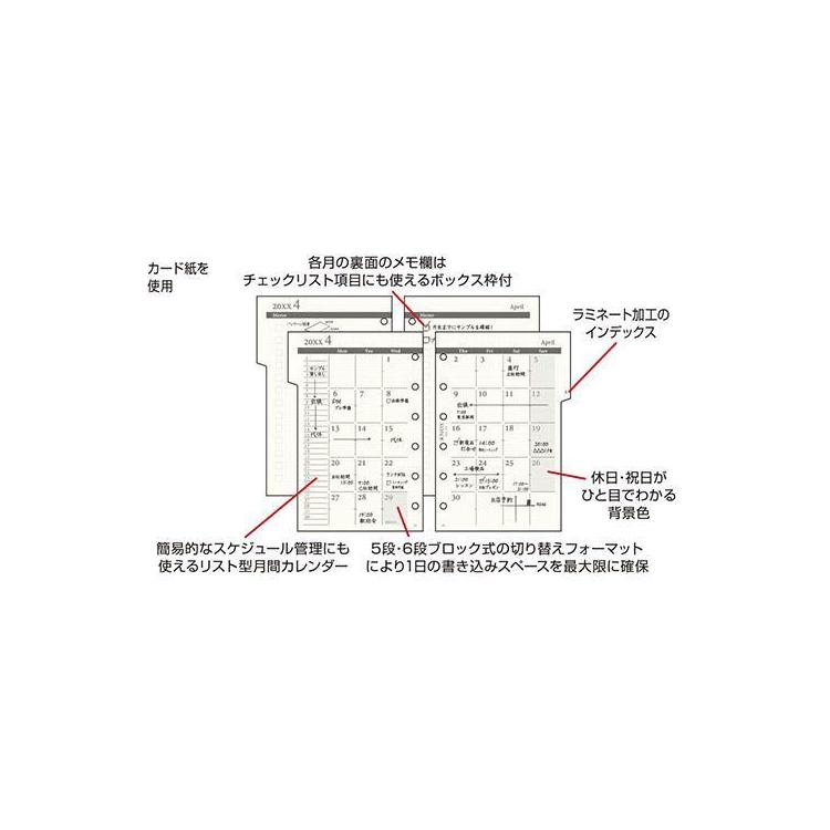 - 2025年12月始まりシステム手帳用リフィル ミニ6 月間 ブロック インデックス