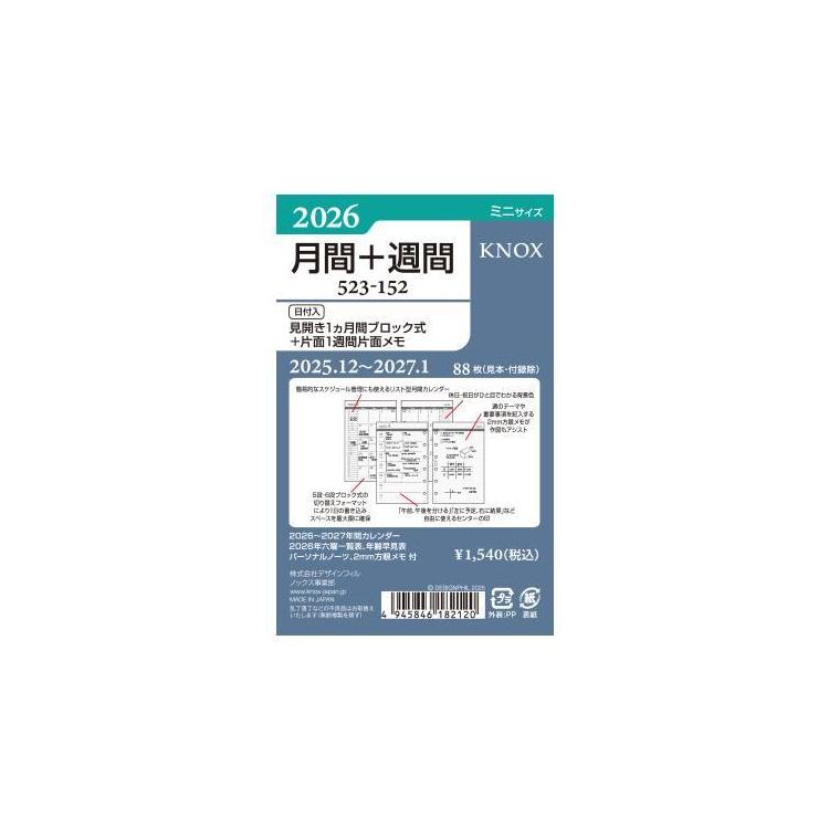 【特長】・ミニサイズ・2025.12~2027.1・オリジナル手帳用紙(クリーム)