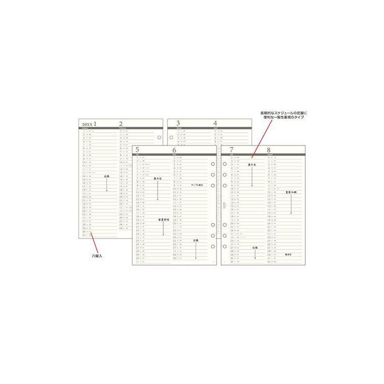 2026年1月始まりシステム手帳用リフィル A5 見開き4カ月 日付入り