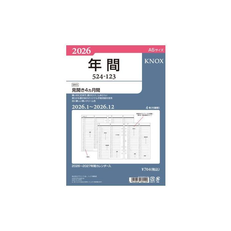 - 2026年1月始まりシステム手帳用リフィル A5 見開き4カ月 日付入り
