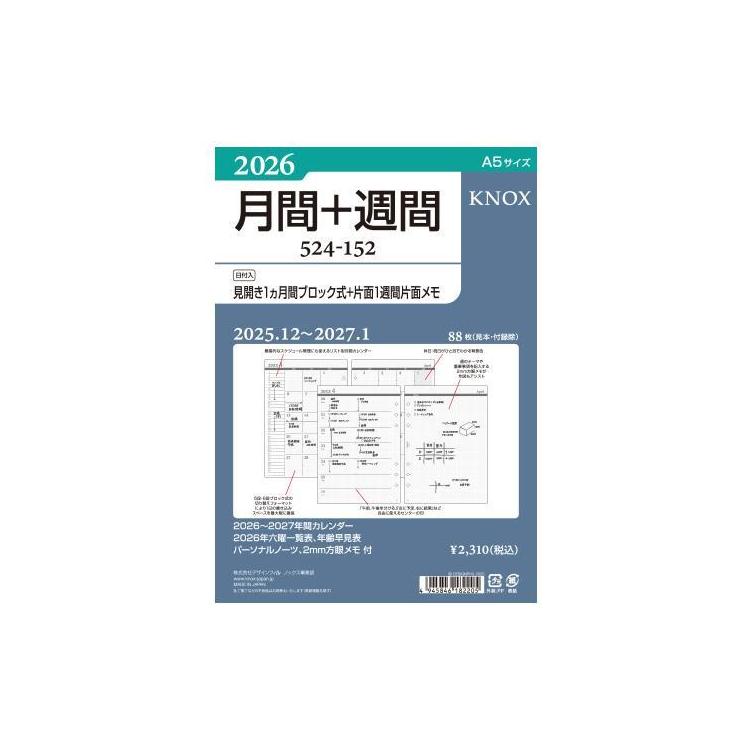 - 2025年12月始まりシステム手帳用リフィル A5 週間 片面1週間 見開き1カ月