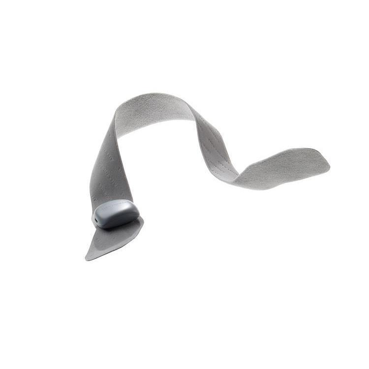 - 1.本体ベルトを首に掛けます。コントローラー側が上になるよう、胸元であわせ、貼り付けて固定します。