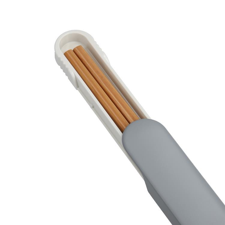 シンプルなロゴデザインで、出しやすいスライド箸ケースと木製箸のセット。