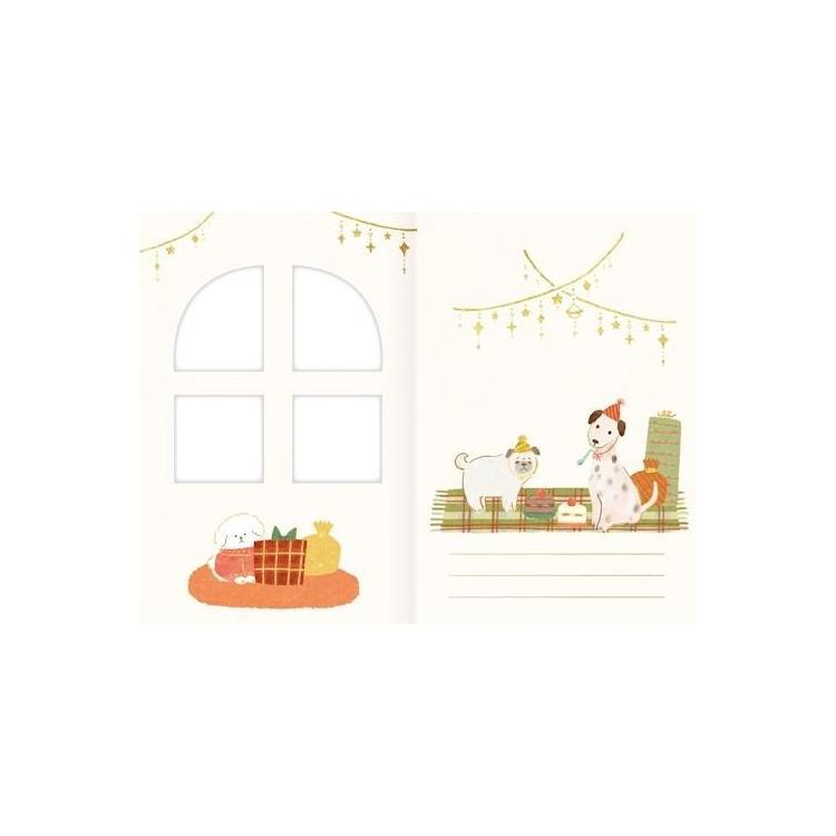 - 冬柄メッセージカード 窓あき ワンワンパーティー