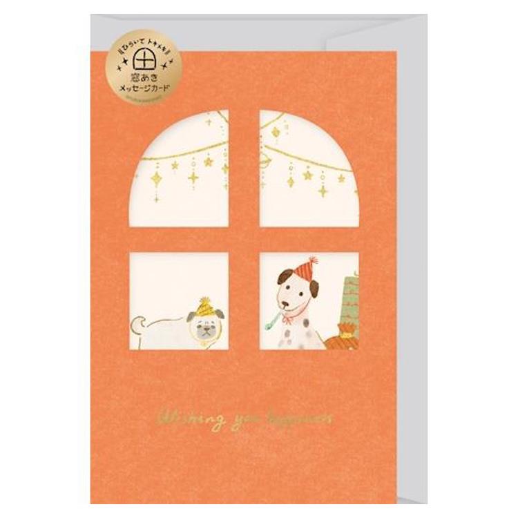 冬柄メッセージカード 窓あき ワンワンパーティー