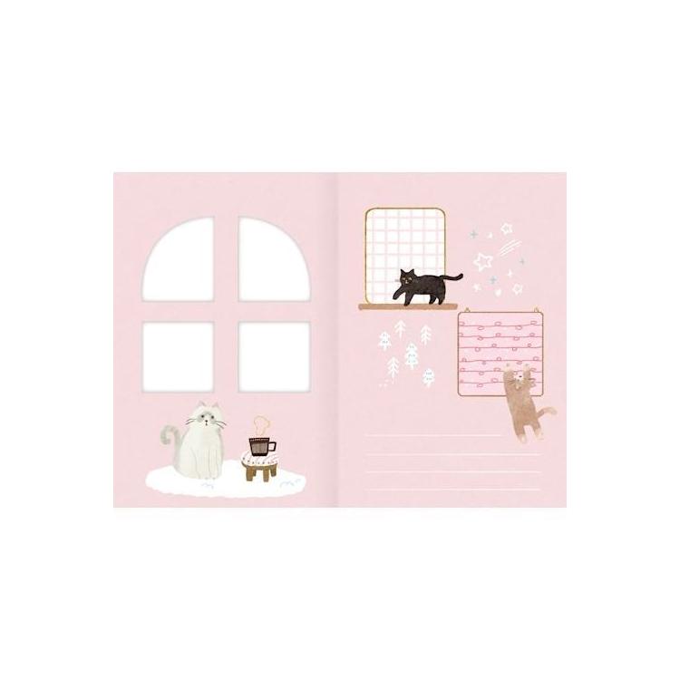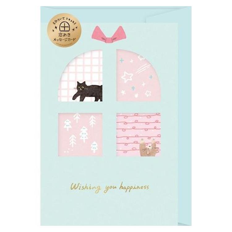 窓からのぞく世界に心ときめく、冬のメッセージカードです。