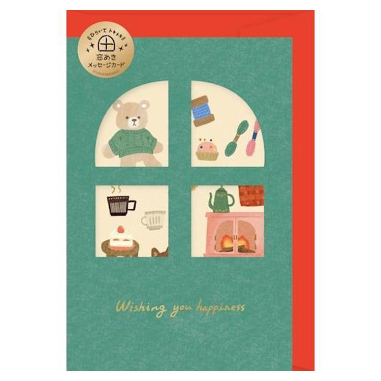 - 冬柄メッセージカード 窓あき くまのぬいぐるみ
