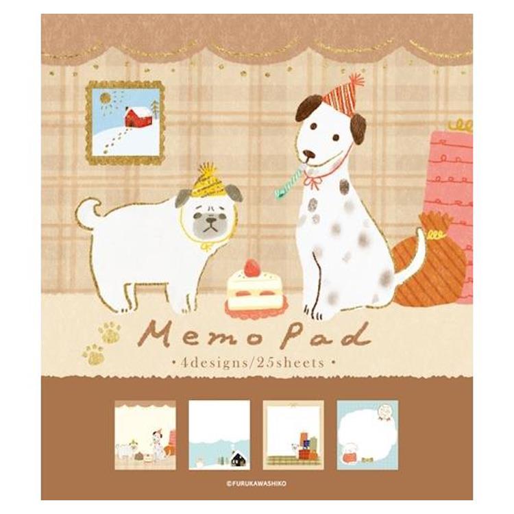 - 冬柄メモパッド 雪景色とわんこ
