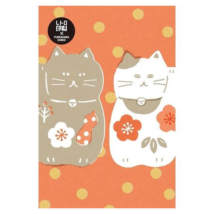 - 冬柄ポストカード レトロ印刷 福呼ぶまねきねこ