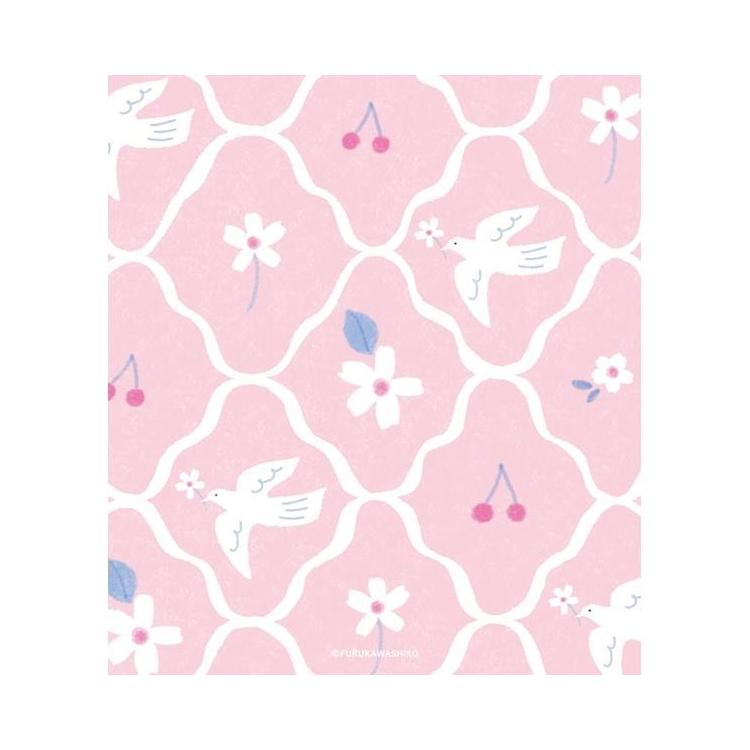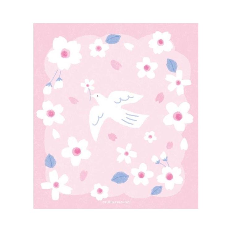 花と動物を組み合わせた、やさしい色合いのデザインです。