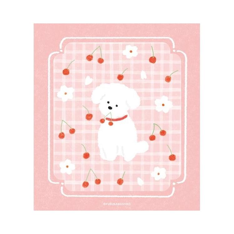 花と動物を組み合わせた、やさしい色合いのデザインです。