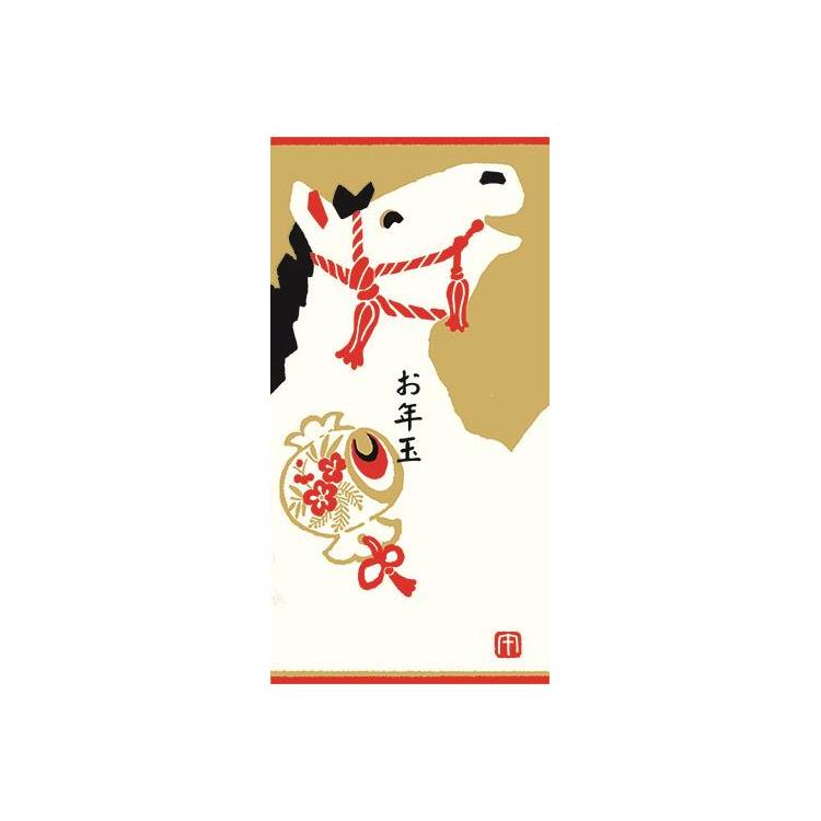おめでたい雰囲気のある楽しそうな馬が全体に描かれたお年玉袋です。