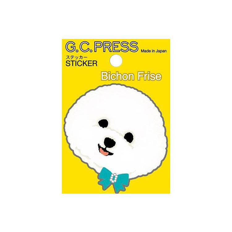 ふわふわの綿飴のようなカットに愛らしい表情のビションフリーゼのステッカーです。