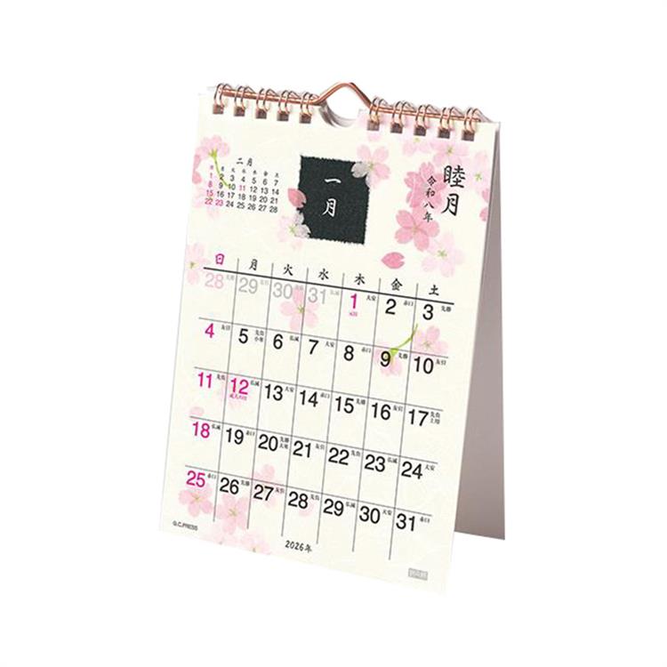 2026年1月始まりカレンダー 卓上・壁掛け 紙司撰 花絵双紙