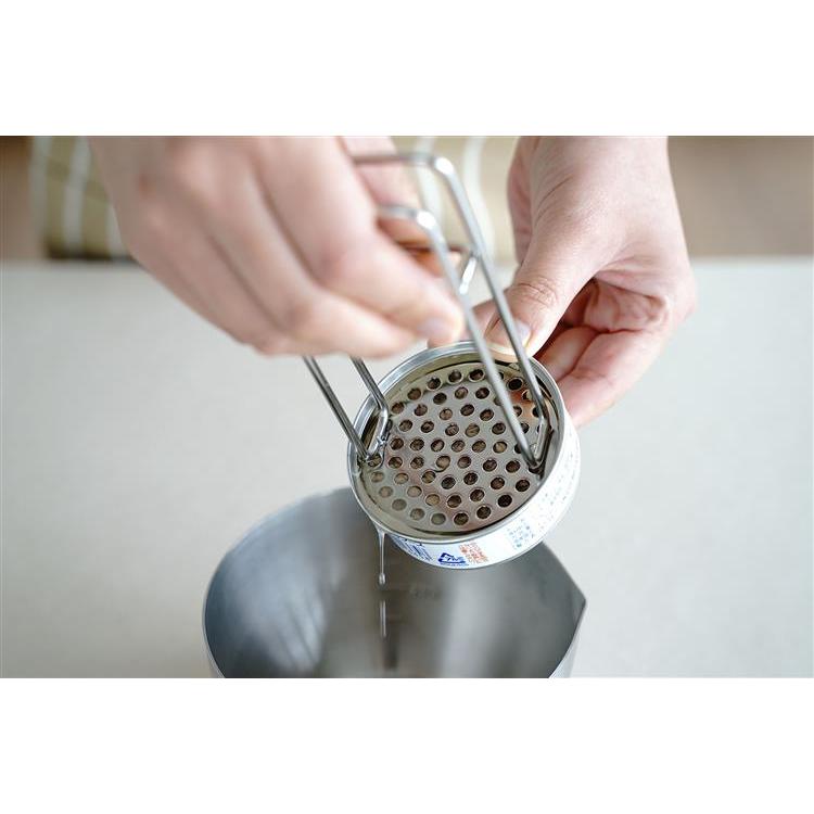 ツナ缶の径に合うので、ツナ缶の油切りやコーン缶の水切りなどにも使えます。