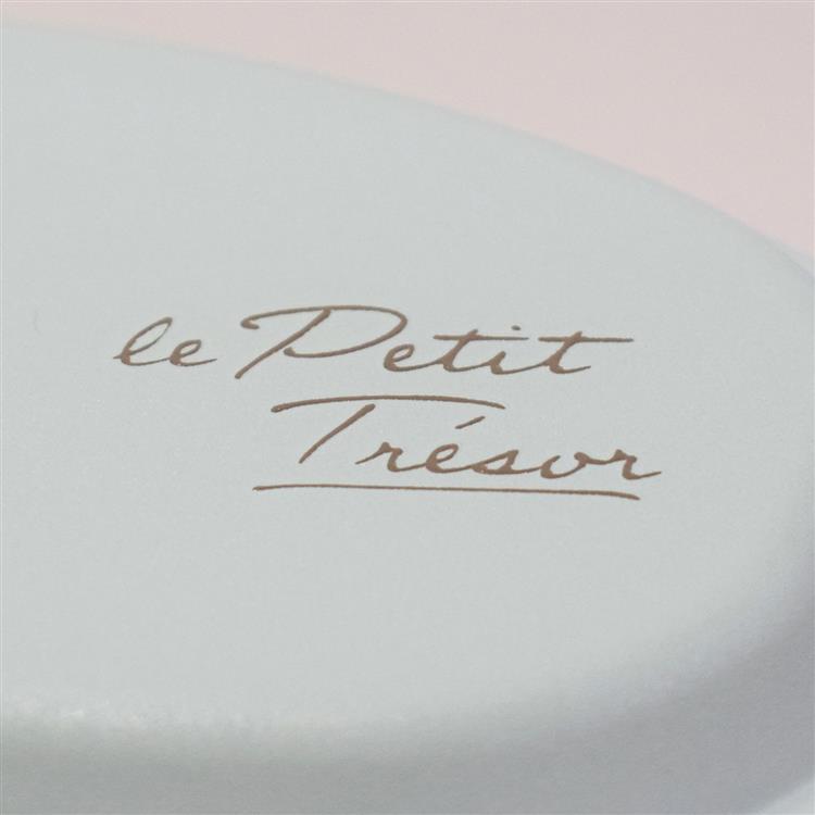 フタはロゴの彫刻の上にゴールドのプリントを乗せています。