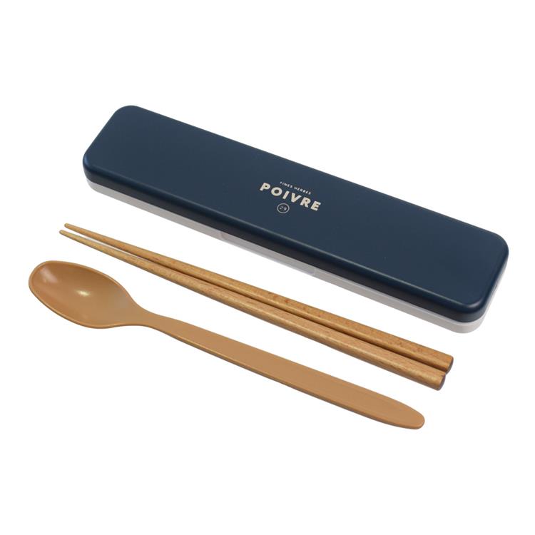 シンプルなデザインの箸、スプーン、ケースのセット