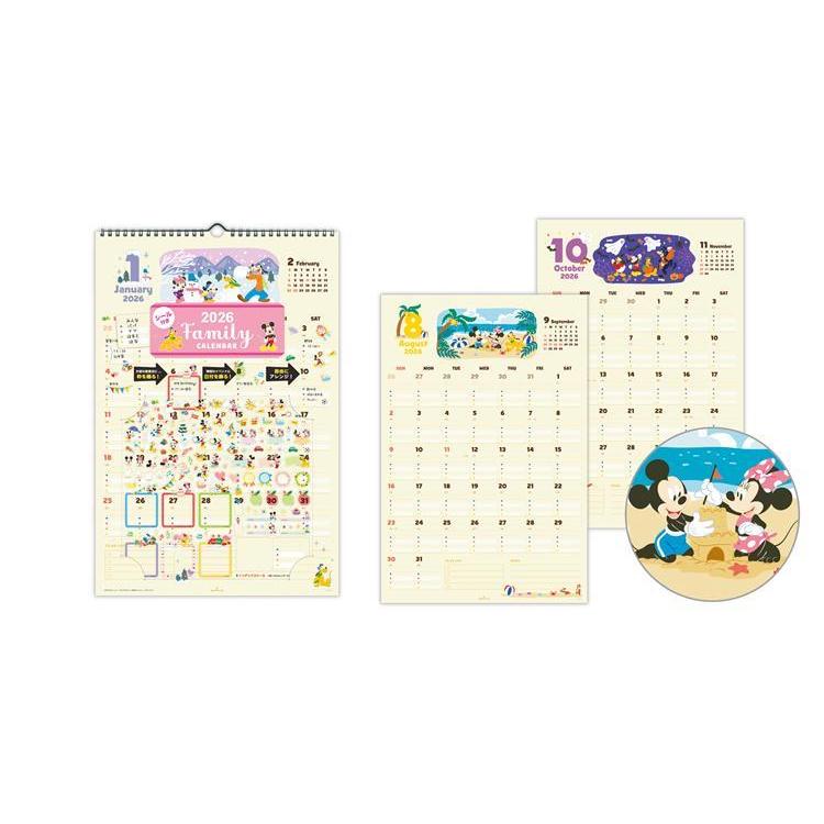 2026年1月始まりカレンダー 壁掛け ファミリー シール付き ディズニー ミッキー