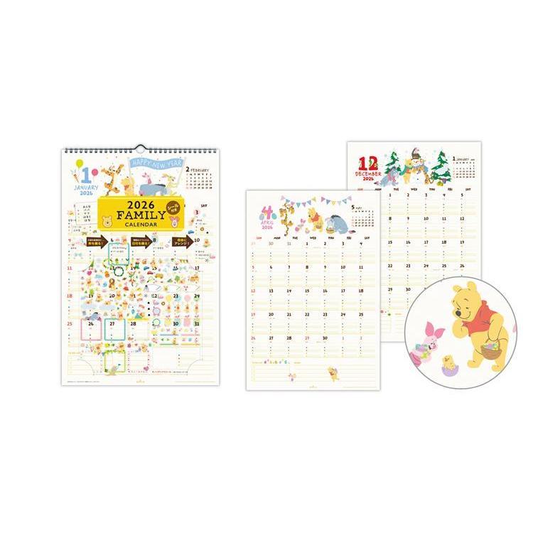 2026年1月始まりカレンダー 壁掛け ファミリー シール付き ディズニー くまのプーさん