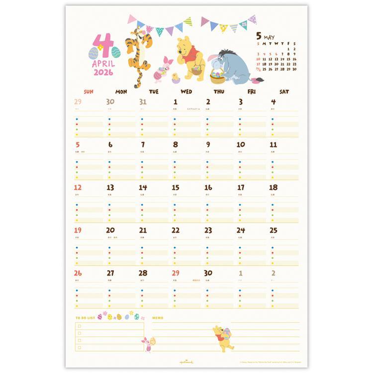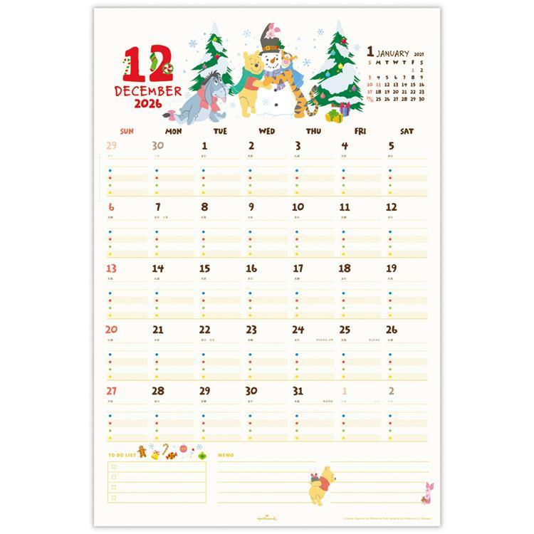 - 2026年1月始まりカレンダー 壁掛け ファミリー シール付き ディズニー くまのプーさん