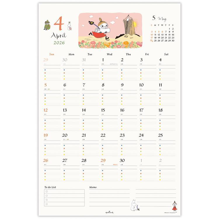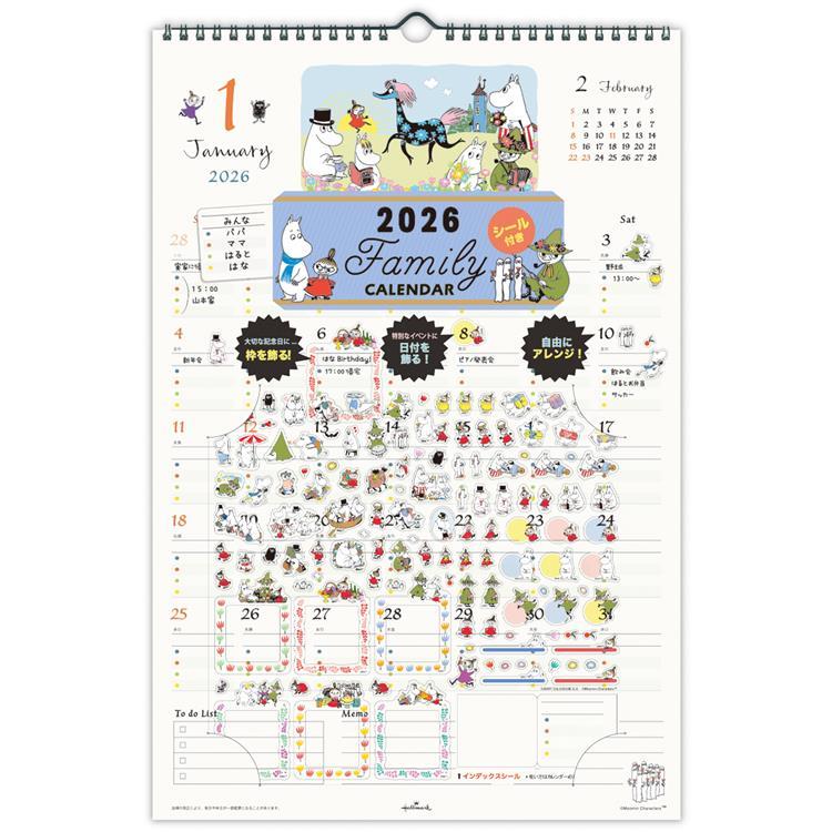 - 2026年1月始まりカレンダー 壁掛け ファミリー シール付き ムーミン