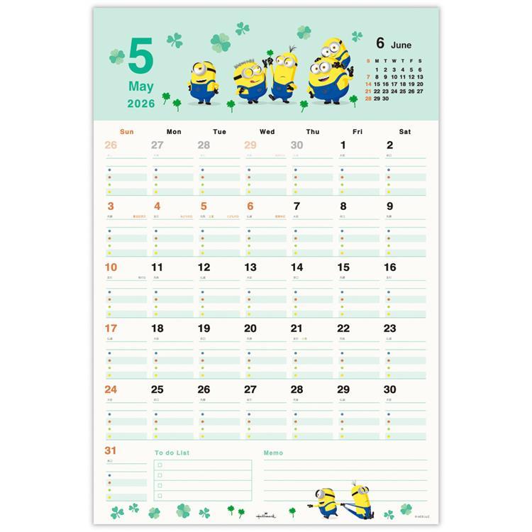 - 2026年1月始まりカレンダー 壁掛け ファミリー シール付き ミニオンズ