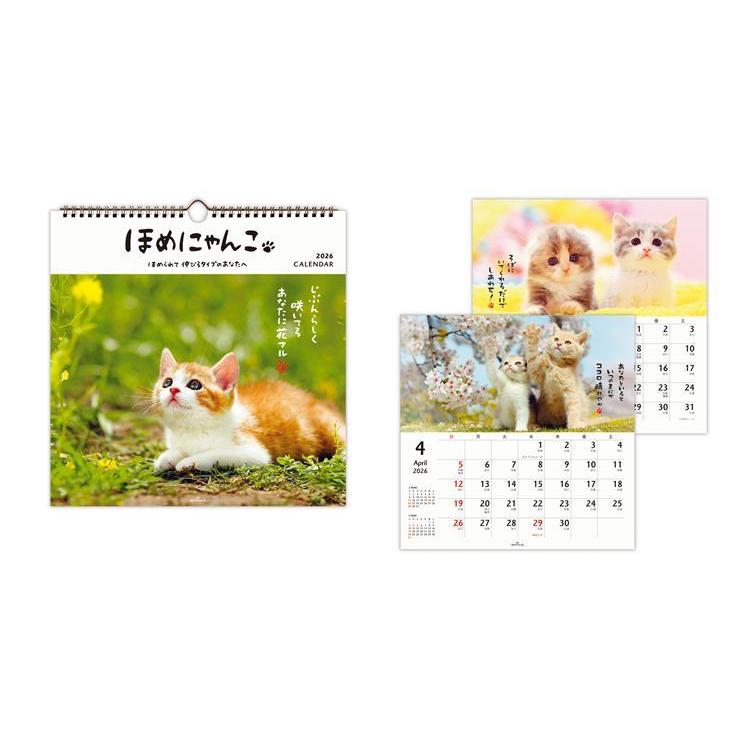 褒められて伸びる猫派のあなたへ! 毎月可愛いネコちゃんたちが褒めてくれる、写真入りの大きな壁掛けカレンダーです。