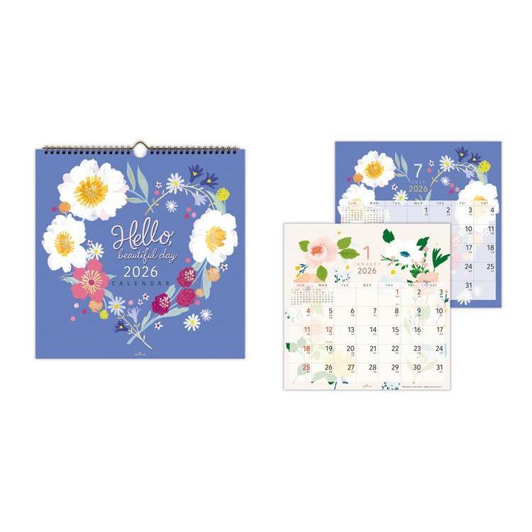 「フラワーアートを楽しむ一年」をテーマに、インテリア感覚でお部屋に飾りたくなるお花のデザイン。小さなブーケがちりばめられている月があったり、大きなリースを飾る月があったりと、さまざまなお花を楽しめます。日付が見やすい大きなサイズの壁掛けタイプです。