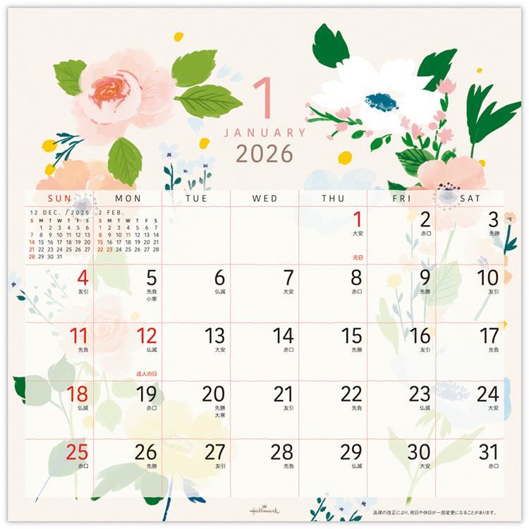 2026年1月始まりカレンダー 壁掛け リング 大 フラワーアート