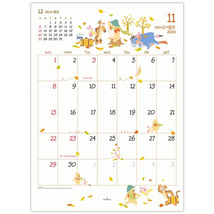 - 2026年1月始まりカレンダー 壁掛け 二つ折り 大 ディズニー くまのプーさん