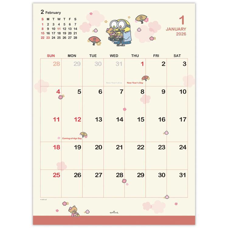 - 2026年1月始まりカレンダー 壁掛け 二つ折り 大 ミニオンズ ボブ&ティム