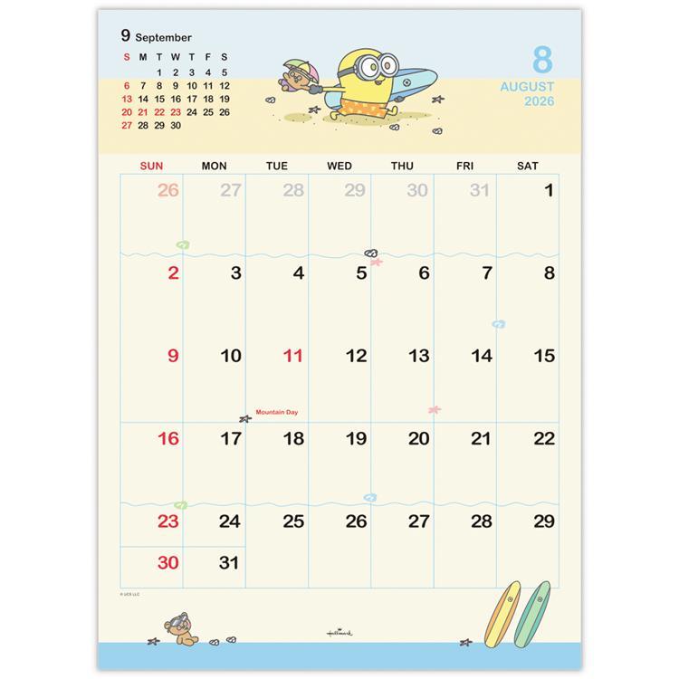 2026年1月始まりカレンダー 壁掛け 二つ折り 大 ミニオンズ ボブ&ティム