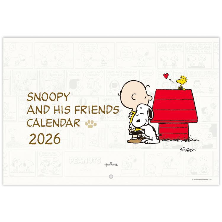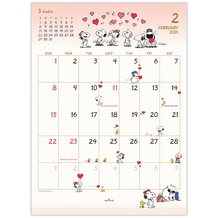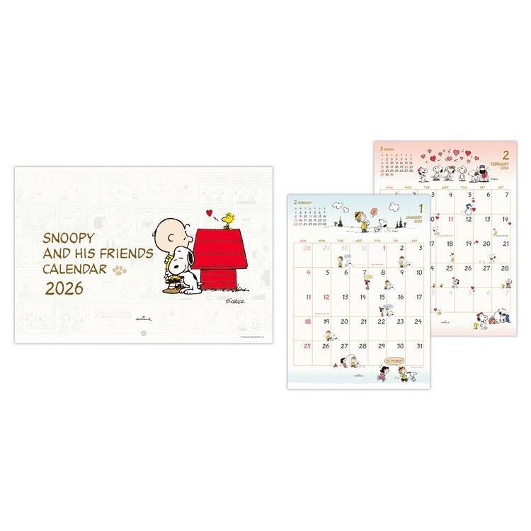 2026年1月始まりカレンダー 壁掛け 二つ折り 小 ピーナッツ