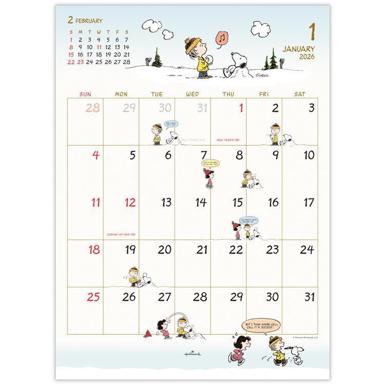 - 2026年1月始まりカレンダー 壁掛け 二つ折り 小 ピーナッツ