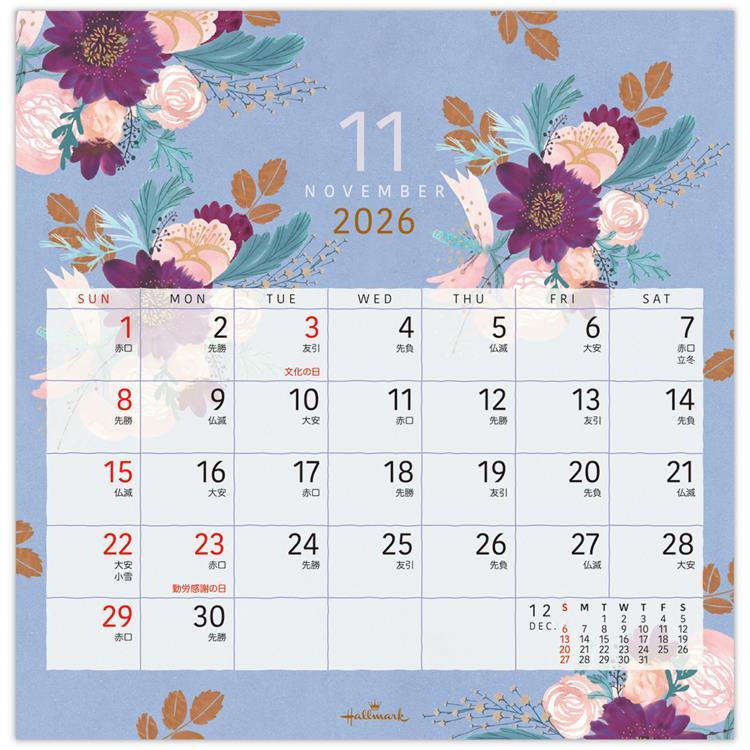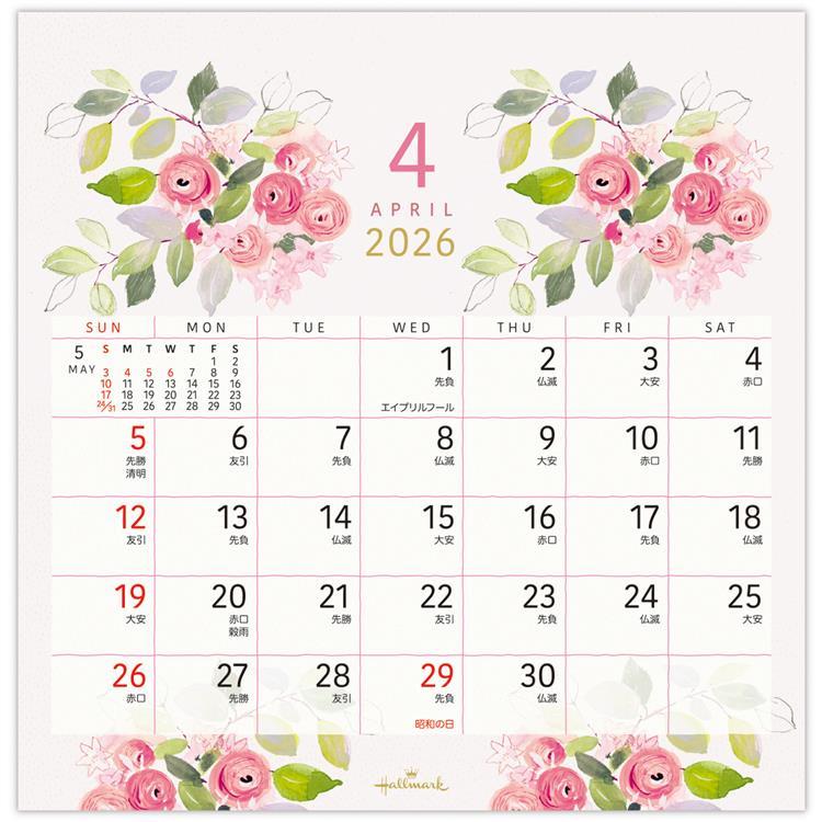 - 2026年1月始まりカレンダー 卓上 フラワーアート