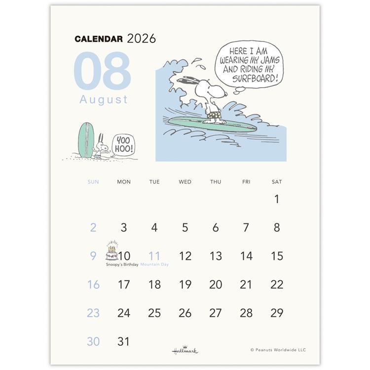 デスクで使いやすい省スペースな卓上カレンダー。シンプルなデザインにスヌーピーたちのアートが映える、おしゃれなカレンダーです。