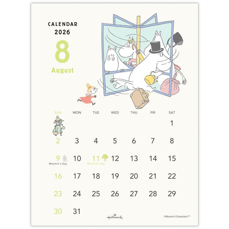 デスクで使いやすい省スペースな卓上カレンダー。シンプルなデザインにムーミンたちのアートが映える、おしゃれなカレンダーです。
