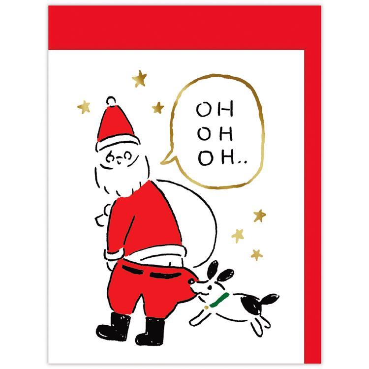 クスッと笑える「おっサンタ」のワンシーンを描いたユーモラスなクリスマスカード。