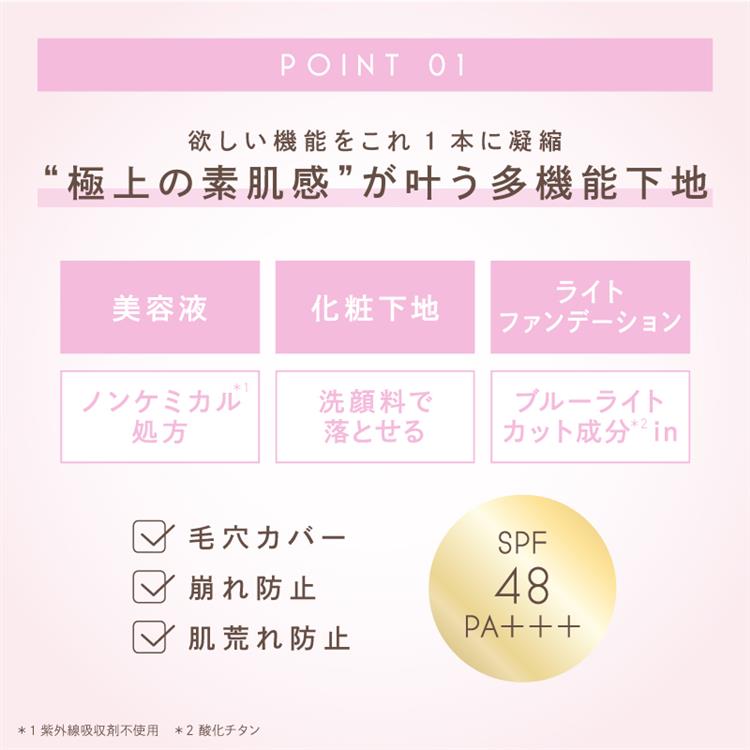 つけるたび自信をまとう ひと塗りでつるんと仕上がるオールインワン美容液下地。