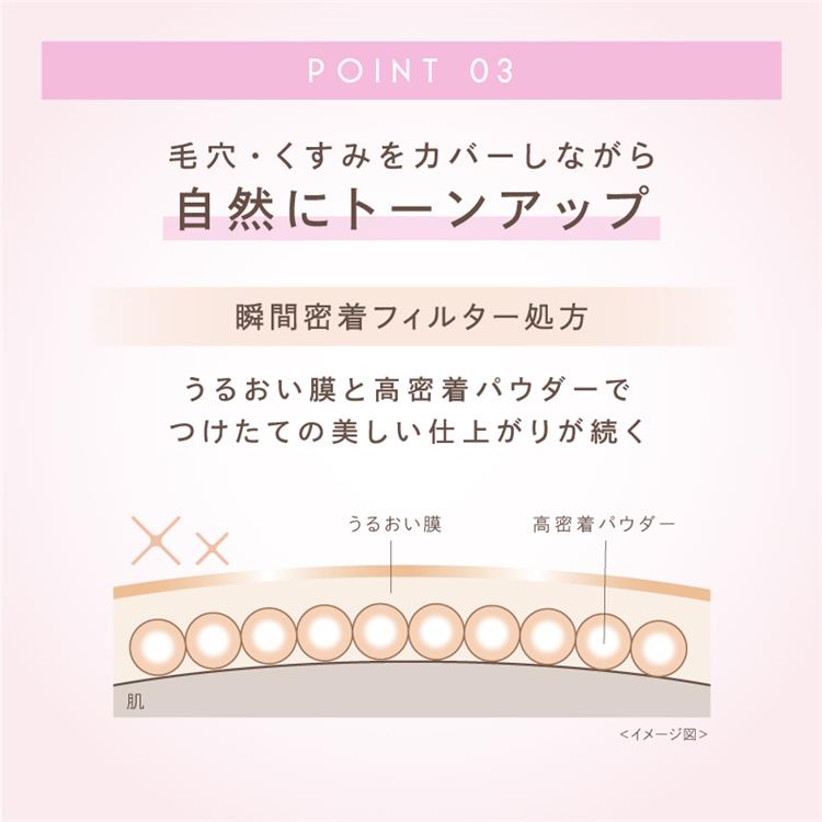 お肌を包み込むうるおい膜と高密着パウダーで日中の乾燥や崩れを防ぎ、美しい仕上がりが続きます。