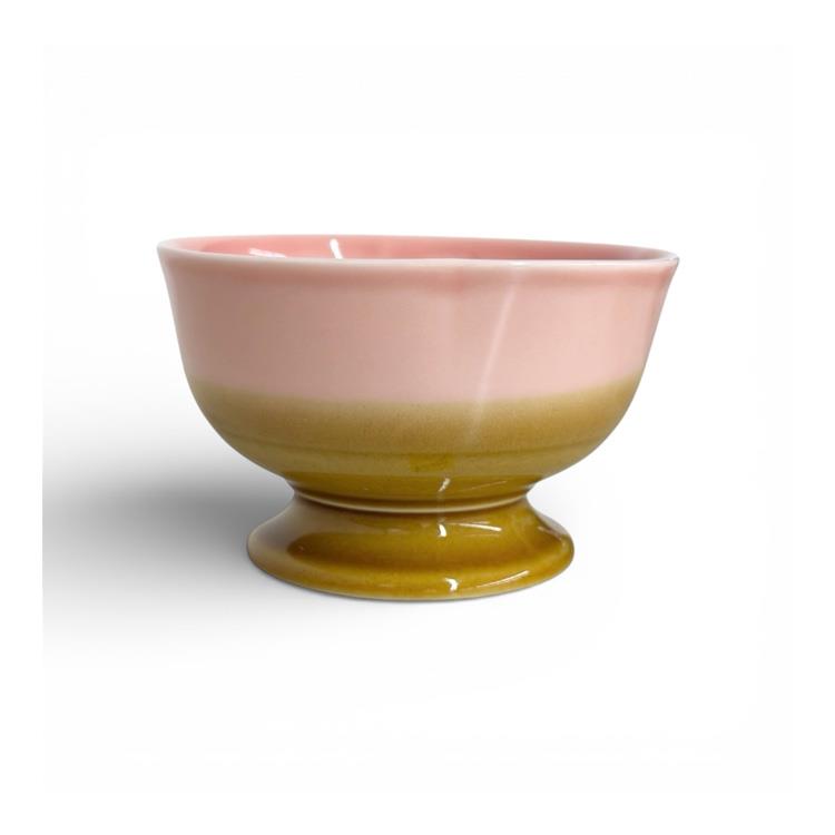 上部は淡く甘いパステル、下部は温もりある釉薬のブラウン。