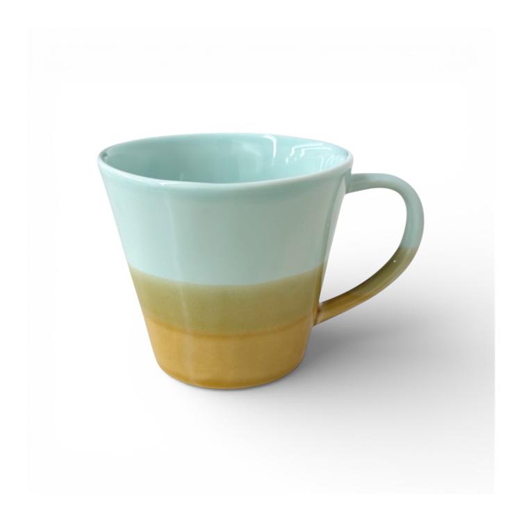 上部は淡く甘いパステル、下部は温もりある釉薬のブラウン。